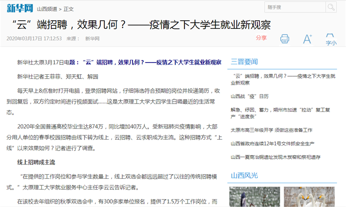 新华社太原3月17日电题:“云”端招聘,效果几何?——疫情之下大学生就业新观察