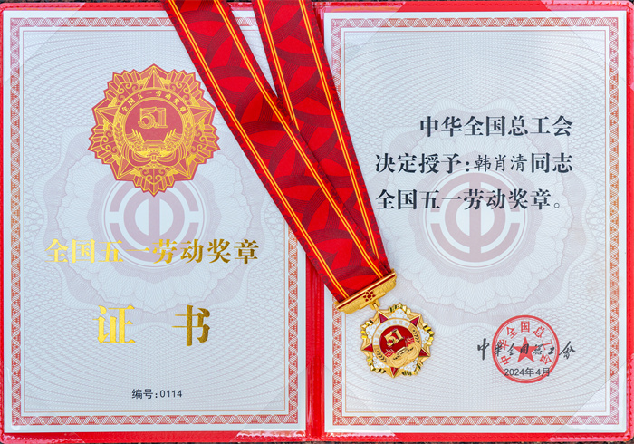 2024年全国五一劳动奖和全国工人先锋号表彰大会在人民大会堂举行,我校电气与动力工程学院院长韩肖清教授荣获全国五一劳动奖章。